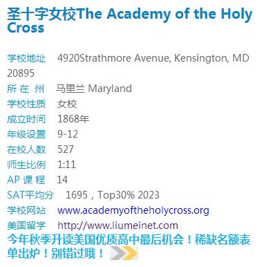 圣十字女校The Academy of the Holy Cross获得了中部学院和中学协会的认证,也获得了马里兰州教育部的认证。