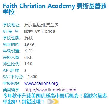 招生学校:Faith Christian Academy 费斯基督教学校
