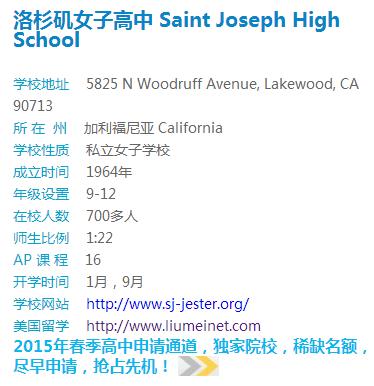 招生学校:圣约瑟夫高中(洛杉矶女子高中)