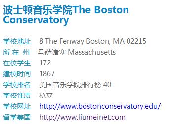 波士顿大学音乐学院(Boston University School of Music),是美国比较好的音乐学院之一。波士顿音乐学院是波士顿大学的一个学院,在音乐培育的过程中,让学生透过专业实际的严格训练,学习相关的知识,经由专业的艺术家教授、导正弹奏乐器技巧、吟唱出动人的歌剧或是舞出美妙之旋律。