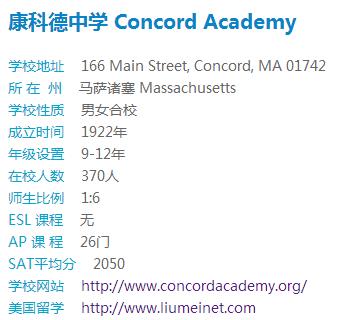 康科德中学 Concord Academy 学校简介: