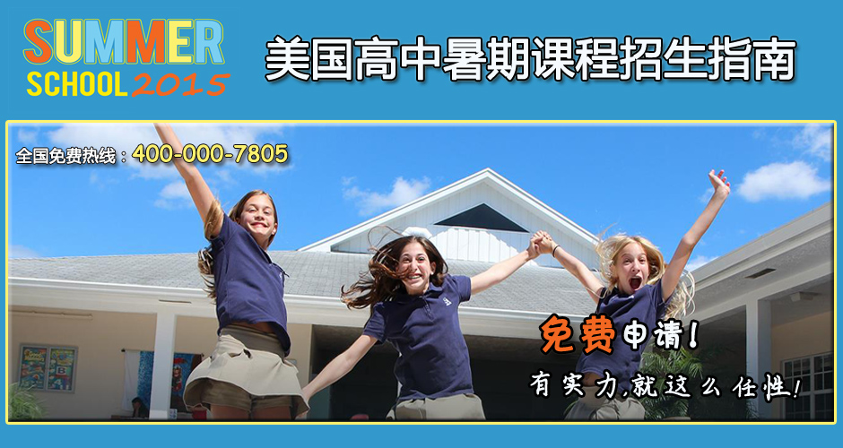 1、美国高中留学专家亲自为孩子规划留学! 2、本月尽早报名,免费赠送15年暑期的美国高中夏校申请服务/VIP定制院校考察服务二选一,价值10000元RMB! 3、今年暑期去夏校体验,今年秋天明年秋季真正入读美国高中! 4、咨询热线:400-000-7805