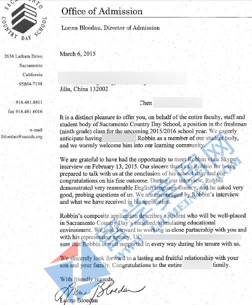 美国加州首府的萨克拉门托贵族学校(Sacramento Country Day School),位于加州首府的一所非宗教顶尖高中,里根总统儿子曾就读该校。留学美国网的学生是该校今年的第一个录取者,目前该校还有1-2个名额,申请从速!