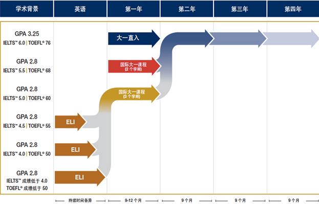 根据学生学术成绩和英文水平的不同,会有不同的学习计划,详情请参考下图: