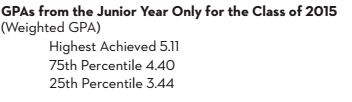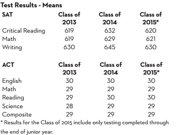学校2014年的123名学生82%去竞争最激烈以及竞争很激烈的大学或学院。2011-2014毕业去向见: