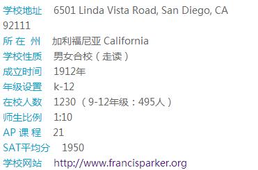 2016秋季入学的美国高中申请开始了!美国顶尖走读高中是非常值得选择,但是名额紧张,通常只招生几名中国学生,申请招满后就会关闭申请。下面这所弗朗西斯科帕克高中是圣地亚哥最好高中之一,留学美国网总监亲自到校考察,与招生官探讨了国际生的招生情况。计划申请16年秋季顶尖高中的同学们,必看:”好“学生,只申寄宿高中很吃亏!