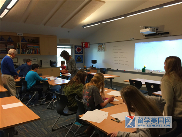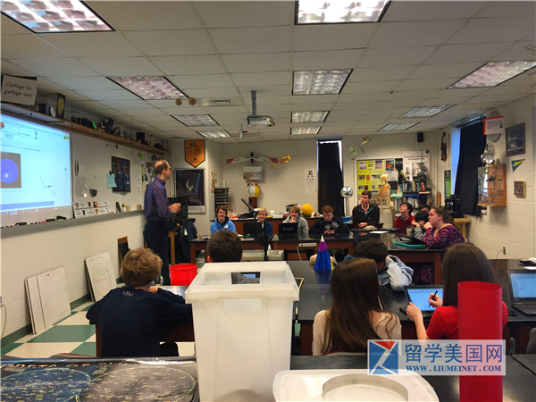 一到学校,正赶上高中部的三名学生分享去印度旅游的经历和感受,后台的播音全部有学生们自己操作(上图)。学校每年都会组织世界各地去旅游和交换,让学生开阔眼界。
