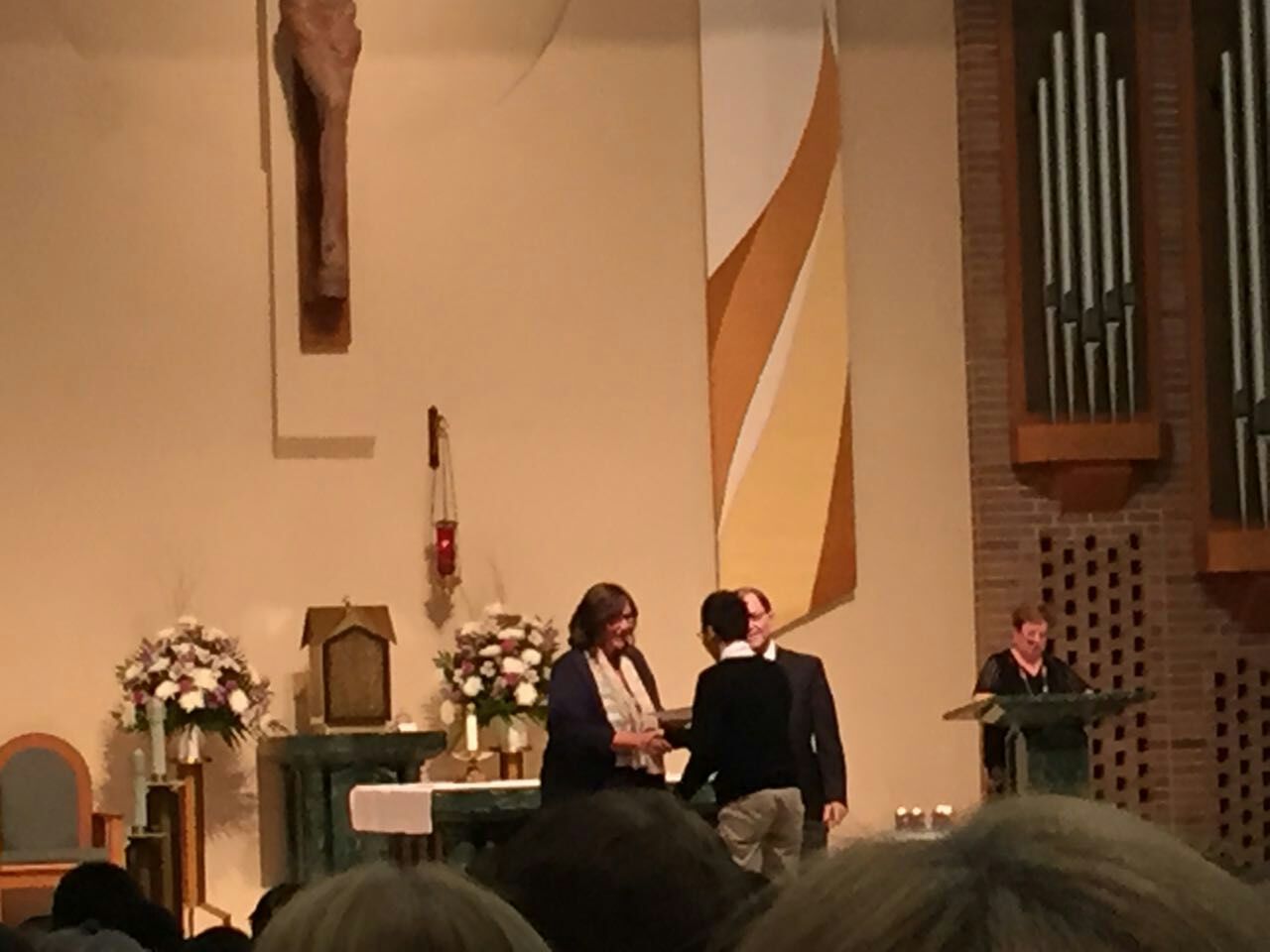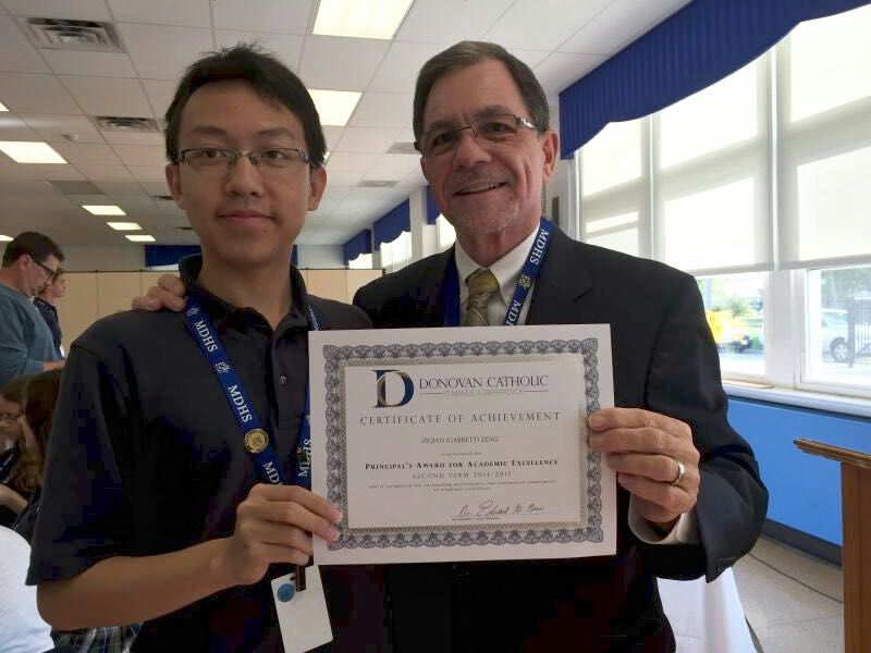 曾同学获学校最高学术荣誉奖,与校长的合影
