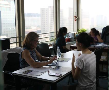 在进行了简单介绍之后,各学校招生官对留美网学员进行了1对1的面试。招生官都很nice,亲切而友好,学生表现得很轻松自在,整个面试效果非常好。下面是部分面试场景。