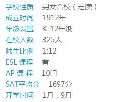推荐理由:学校100%升入四年制大学或学院,39%学生进入Barron美国大学名录竞争最激烈的大学。每年超过60所大学到SIA招生,包括普林斯顿大学、纽约大学、卫斯理女子学院等。教学环境优越,设施一流, 捐款基金高达1.35亿美元!课外活动师资出色,硕果累累。篮球教练Rose Bruno被纽约每日新闻评为年度最佳教练之一。网球教练Brian Manske带领球队已获得超过400个冠军。9年级学生可前往伦敦考察一周,费用包含在学费之内。学校采用小班教学,学生得到更多关照,每一位学生都有一位导师。前纽约州大学升学顾问协会主席主导最顶级的大学升学辅导项目