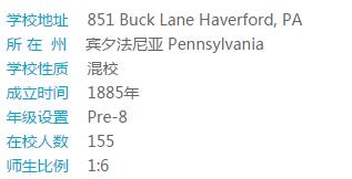 费城白人郊区的最好的K-8年级贵格会学校(没有之一);校园紧邻顶尖文理学院Haverford College,130年前为了给Haverford College教授们的子女提供教育而建校,毕业升学率99%升入东岸顶尖高中;学校位于亲近自然宁静且安全的贵格会社区;校园本身就是一个国家认可的野生动物栖息地;小班教学,个人关注度高,学术积极进取;STEAM学习项目,在初中期间起就重视培养学生对美国热门移民人才稀缺专业Science, Techology, Engineering, Mathmatics学科的兴趣爱好,为引导学生将来走向稳定发展的职业生涯,打下坚实的内在基础;