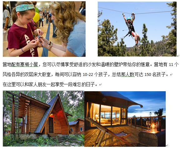 营地坐落在美丽雄伟的大熊山脉附近,海拔5800英尺,被高耸的松树和杉树包围,在圣安娜河的一侧,是一个美的令人窒息的历史地标。在营地里可以享受层林所给予我们的平静和祥和。营地的主娱乐大厅有可以点燃篝火的地方,篝火熊熊燃烧,美丽极了。孩子们可以在这里玩桌游,有令人愉悦的气氛。