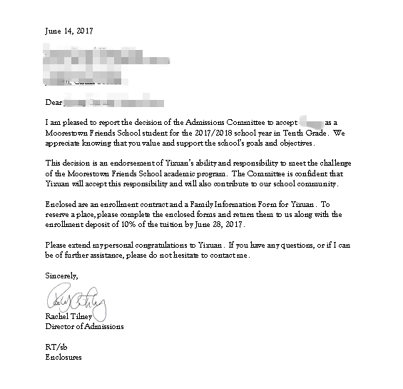 恭喜Cai同学成功补录到顶尖高中Moorestown Friends School