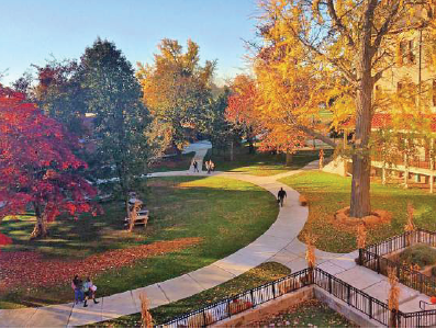 4、校园位于德拉瓦河畔,景色优美,拥有4处主建筑和一座小型教堂。教堂与其中两幢教学楼被列为美国国家历史建筑。