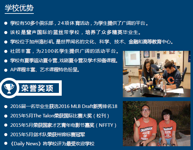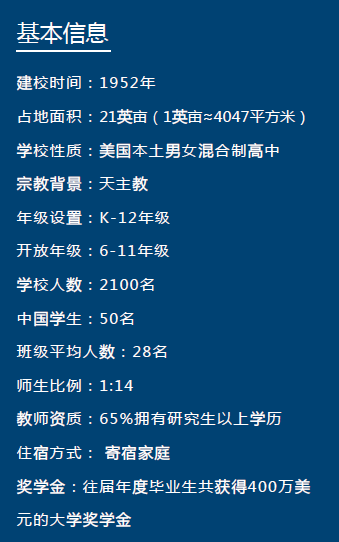 超小班授课,国际知名蓝丝带高中,培养出众多精英毕业生。学校位于位于美国经济