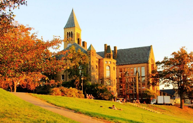 该校1864年建校,位于纽约州中部小城伊萨卡(Ithaca)。对于到过康乃尔大学的人来说,“大”是多数人首先想到的第一个词。该校现有学生1.9万人(其中本科1.3万人),校园占地3000英亩(约1.8万亩),是常春藤盟校中年纪最轻,但规模最大的。相比之下,占地只有175英亩的耶鲁大学,142英亩的布朗大学真是小的可怜。大,其实只是它的外在特征。与贵族气息一个比一个浓厚的常春藤盟校相比,康乃尔大学算是非常平民化的。与完全私立的其它常春藤大学不同,康乃尔大学非常特别,竟是“公私合营”、“一校两制”。