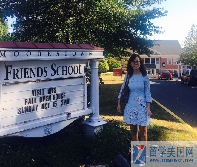 石老师走访了新泽西的Moorestown Friends School中学,这是一所具有200多年的历史贵格会中学。招生老师介绍贵格会的理念是彼此相互尊重和平等。招生主任热情的接待了我们,她曾来过上海和北京,对中国文化非常熟悉。该校的毕业生有获得过诺贝尔奖,有政要的,有著名的女主播。升学走向非常好,2017年毕业生有去哈佛大学、耶鲁大学和斯坦福大学。目前学校正在招生中,想申请的可以马上咨询:400-000-7805;010-65183908,微信:liumeinet2014