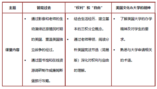 美国历史文化课是美国高中文科学生的必修课。这个夏天我们将跟随美国老师深入美国历史三角之一的威廉斯堡,追踪殖民时期的蛛丝马迹,思考“权利”和“自由”的关系,深层次的研究美国的历史和文化。在上下求索的过程中。你将掌握未来世界的核心竞争力——思辨力!