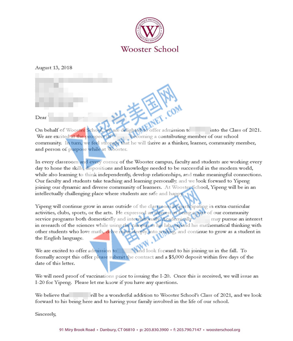 恭喜C同学补录伍斯特学院 Wooster School,祝留美网同学前程似锦,学业有成!