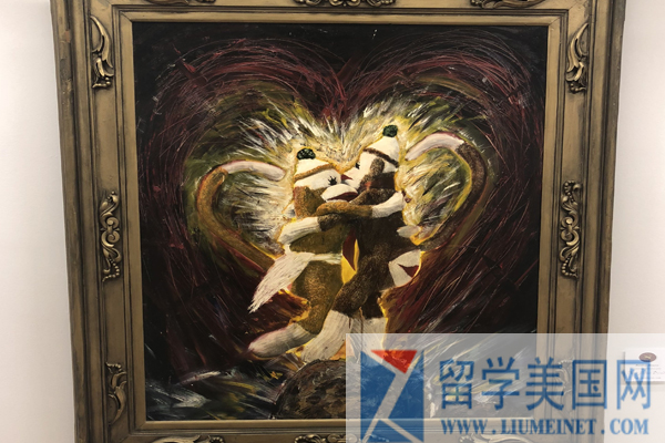 学校走廊里是学生的画作,很有意境