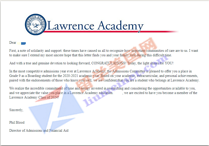 录取捷报 | 恭喜留美网Wendy同学斩获顶尖美高湖森中学Lake Forest Academy的录取~