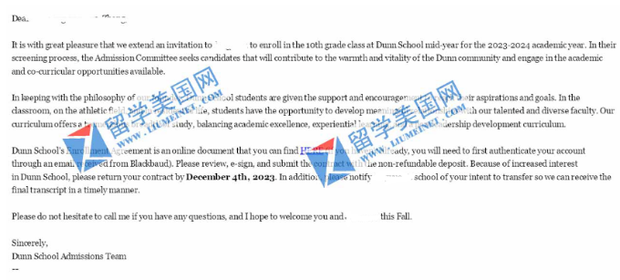 【录取喜报】恭喜留美网学子Y同学斩获邓恩中学Dunn School录取offer