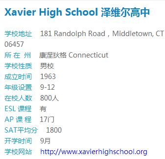 1.泽维尔高中是一所大学预备天主教高中,由 Xaverian 兄弟创办于 1963 年。它位 于康涅狄格州米德尔顿镇,与毗邻的女校 Mercy High School 是姐妹学校。
