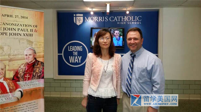 留学美国网总监石老师与莫里斯天主高中招生官。