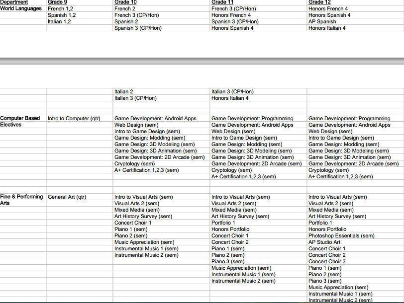 学校课程设置非常丰富,可以满足不同学生的需要,2014到15年的课程设置: