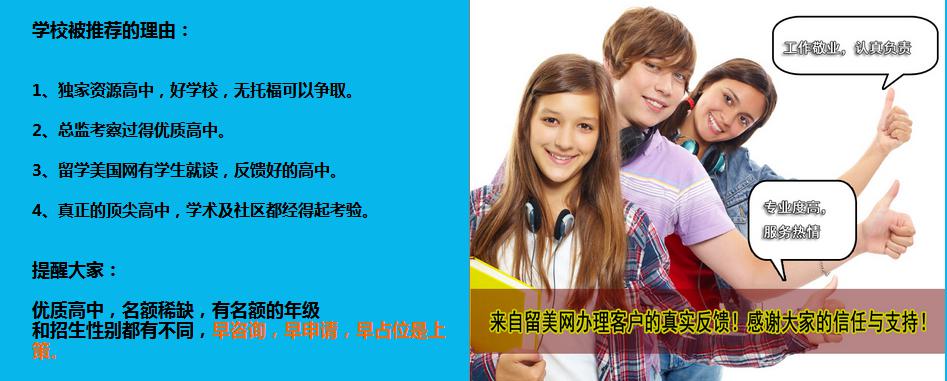 推荐理由:州内排名第一的私立高中!学术出类拔萃!去年有学生的住家有私人飞机,超棒的富人区,住家都是非常好的!感兴趣的朋友联系:400-000-7805