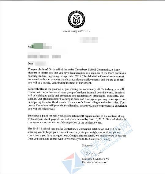 留美网全体员工戮力同心,成功为王同学补录到顶尖寄宿坎特博雷中学!