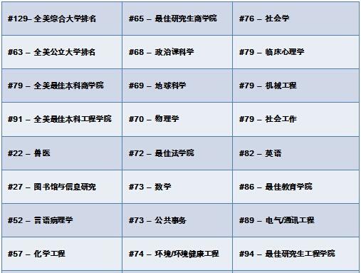 · 其它特色专业:精算,商务智能,灾难科学与管理,体育管理,艺术管理