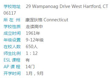 康州百年混校,学校和体育中心是分开的,在设备上来讲,体育设施非常齐全,也是唯一一个走读高中有室内游泳池的。靠近耶鲁,高年级能在耶鲁修学分。冰球新英格兰地区前三,号称全美洲最棒。生物、科学特别好。学生15%去向常春藤.