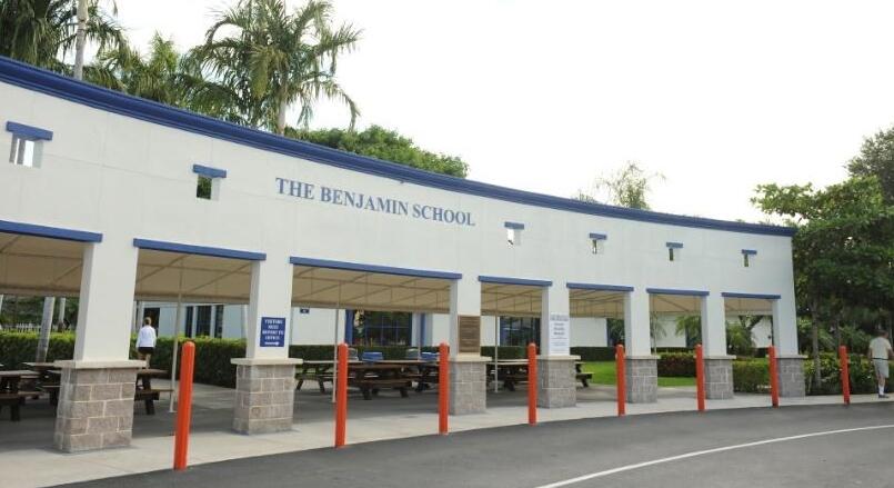 本杰明学校是美国杰出的大学预备中学之一,位于美国佛罗里达州富人聚居的棕榈滩(Palm beach),是当地最优秀的私立贵族走读中学,学习环境和社区条件十分优越。学生家庭90%以上为当地中产阶级以上白人富裕精英家庭,其中不乏世界上负有盛名的美国名人子女。国际生很少。学校有最新技术和培训在电视演播室广播和视频制作方面。