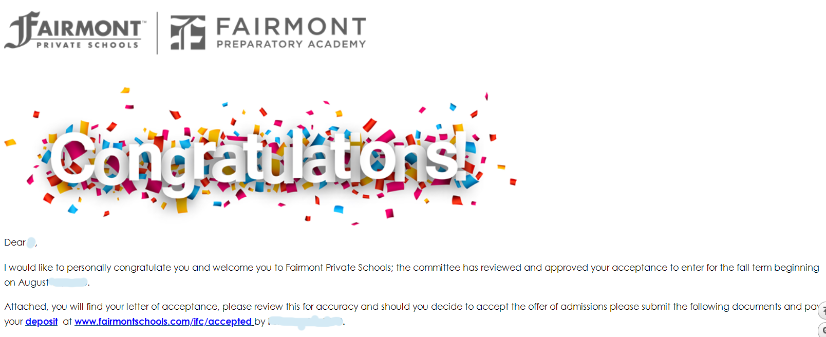 恭喜留学美国网K同学收获费尔蒙特中学录取