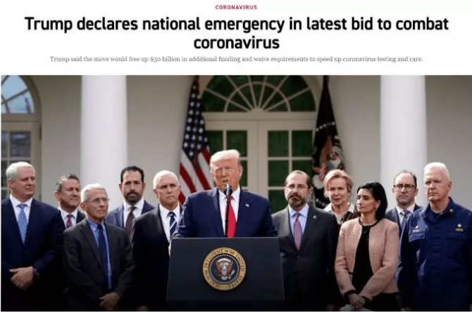 近日,特朗普宣布美国进入应对新冠肺炎紧急状态,这一举措将为美国抗击疫情获得额外500亿美金的联邦政府支援,用于各州医疗机构应对新冠肺炎疫情,同时要求各州尽快建立应对新冠肺炎的应急指挥中心。