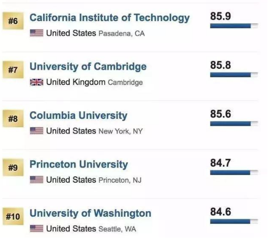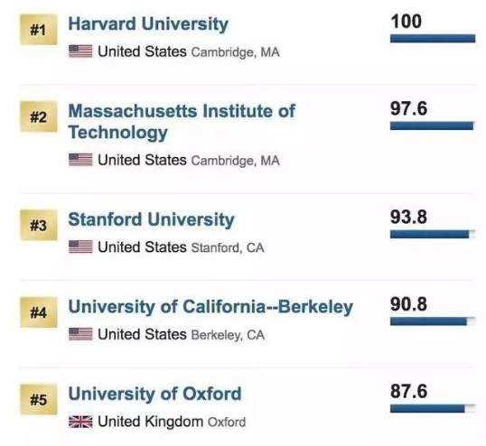 我们来通过世界顶尖大学USNews的排名榜单就可以看出美国在大学资源方面占据着怎样的地位。