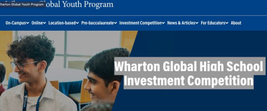 沃顿商业投资挑战赛(The Wharton Global High School Investment Competition),简称WGHS(中文简称:沃顿商赛),是一项面向全球9-12年级高中生和教师且免费的线上投资竞赛,由美国宾夕法尼亚大学沃顿商学院官方举办。比赛每年9月下旬启动,全程历时8个月,参赛团队为4-7人。全球优胜者将有机会站上沃顿商学院演讲台,展示团队的投资组合策略。
