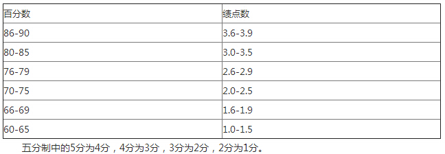 一般来讲,百分制中的90分以上可视为4分,80分以上 为3分,70分以上为2分,60分以上为1分,可以对照下表。