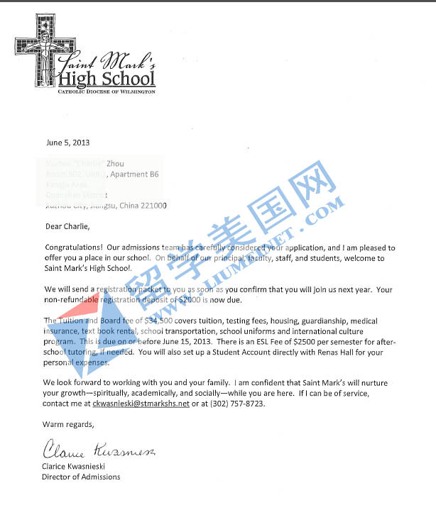 下面是录取信: