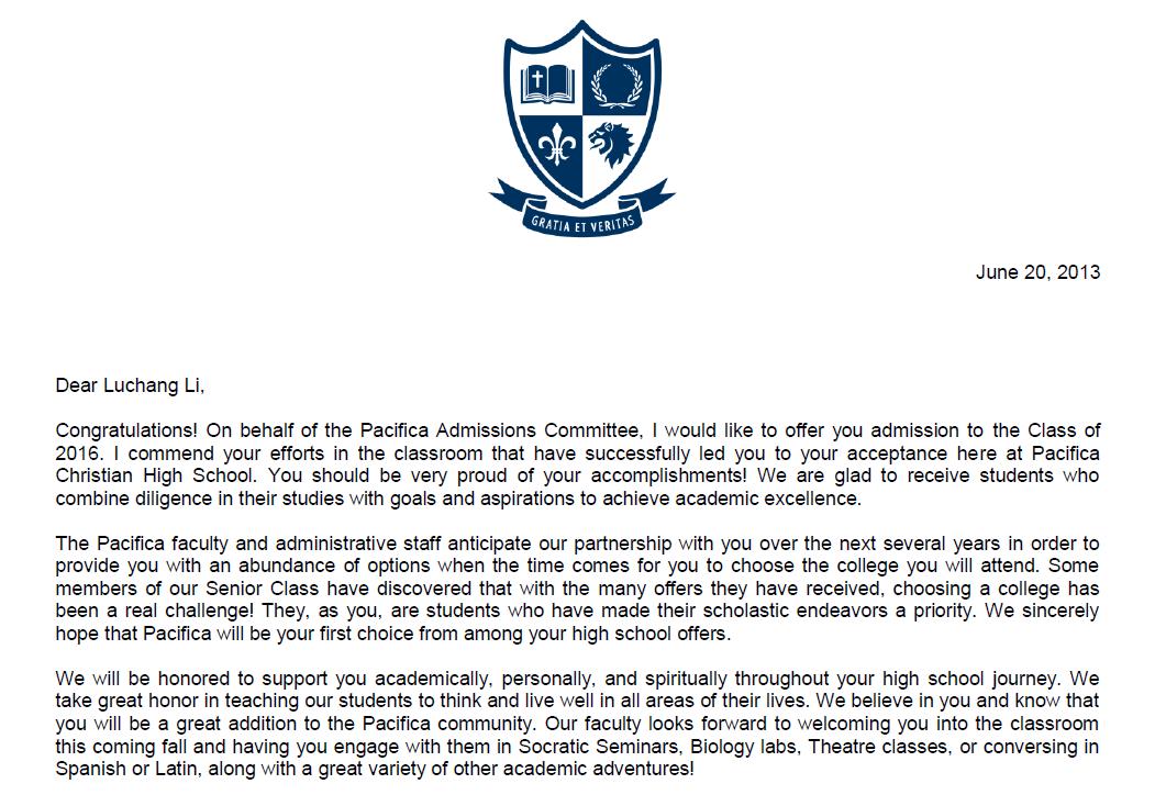 他第一眼看上去高高瘦瘦的,但脸上看不出一丝弱不禁风。相反,他爱笑,成熟,活力四射也很有礼貌。该同学共申请了三所学校,其中太平洋基督是他最向往的。首次交流,我便发现他的英语功底不错,口语也较好。而且他自己也很自信。我们都觉得以他的实力申请这三所学校应该问题不大。三所学校相继发来面试通知。