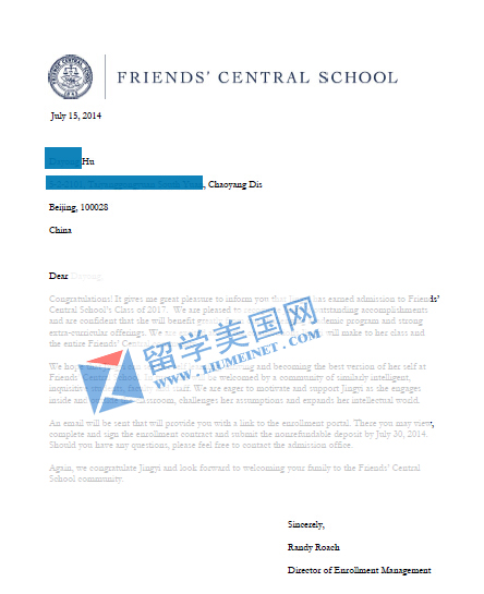 留学美国网提示:因录取信里有多处学生名字,故正文被模糊。