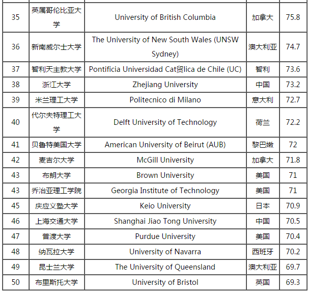 QS毕业生就业竞争力排名