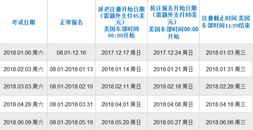 3.SSAT考试安排以年度为单位,2017-2018年度从2017年8月1日开始,到2018年6月9日结束。改期(需要额外支付35美金)考试在本年度内进行,无法跨年度改期。