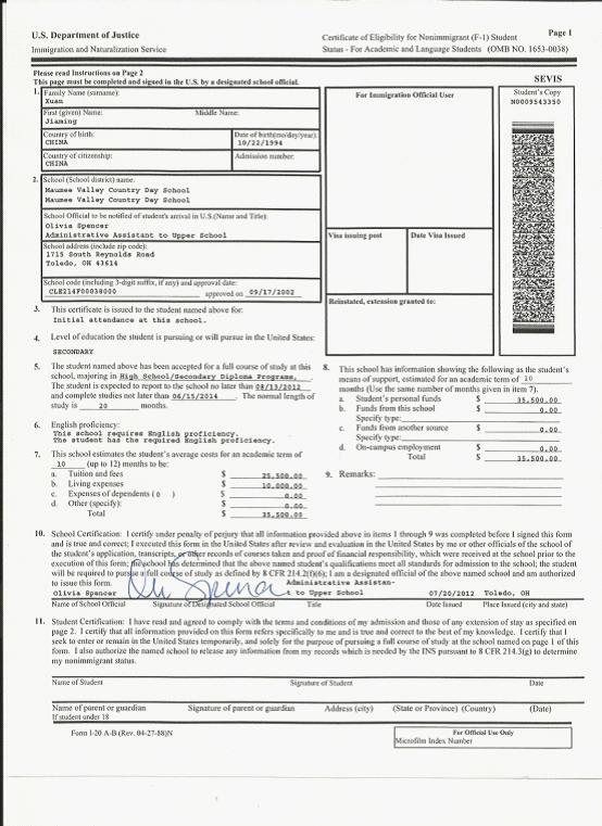 Maumee Valley Country Day School I-20表