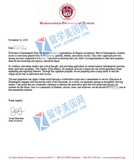 (玛丽安娜波莉兹中学marianapolis preparatory school offer展示)