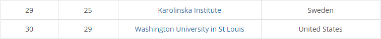 2019年全球最佳生命科学专业排名