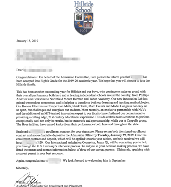 成功案例:恭喜S同学喜获希尔塞得中学Hillside School录取offer