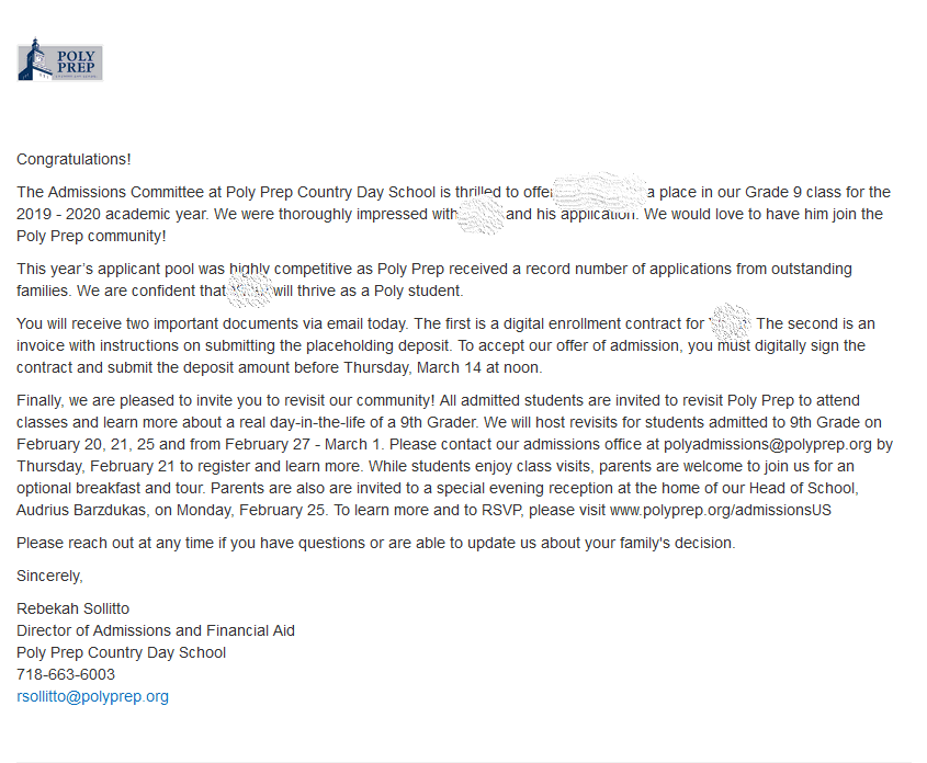 波利预备中学录取offer展示 恭喜留学美国网W同学!