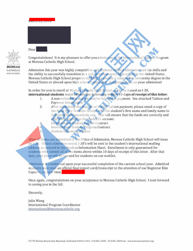 恭喜P同学获得美国莫若高中录取offer